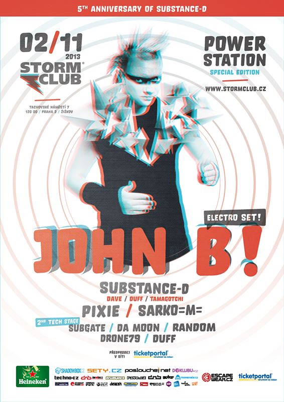 Společně s Johnem na hlavní stagi vystoupí český hudební projekt, složený ze tří DJs (Dave, Duff, Tamagotchi) Substance – D. Tato partička se zaměřuje hlavně na electro, fidget & dirty house a na akci Power Station, oslaví 5 let od svého založení! Jak už bylo naznačeno, hlavní stage bude patřit electru, mimo Johna B a Substance-D projektu zde vystoupí všem známý DJ Pixie, který ovládá i jiné styly než drum and bass a celý line up doplní Sarko=M= z legendárního Metro Sound Systému.